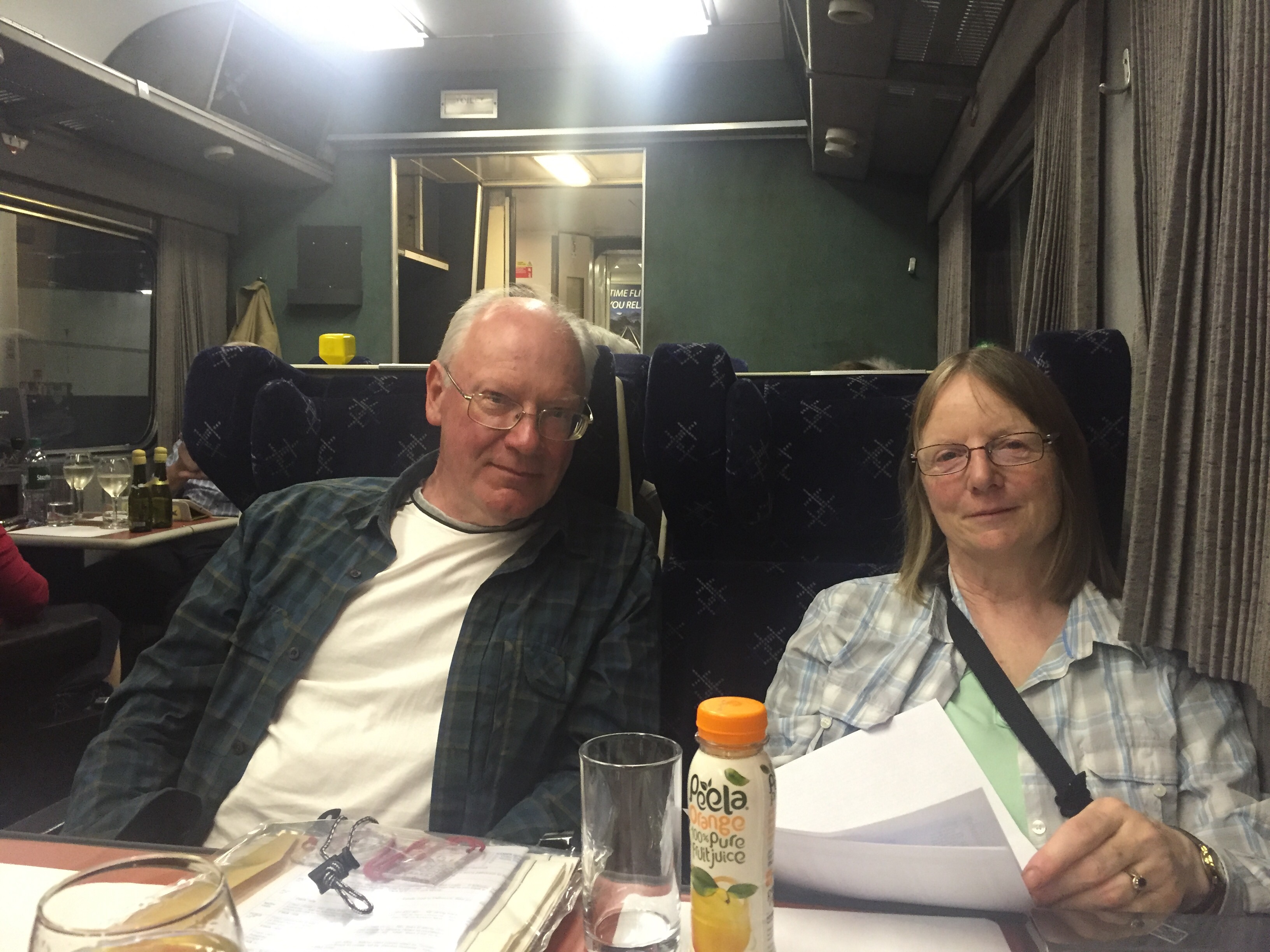 As a traveler who has been in his share of sleeper cars, this rates at the top. After a brief repack it was down to the club car where I met the first TGOC travelers of the trip, Victor and Nicole Slawski, a couple of Brits on their 10th crossing, with an enormous amount of years between the first and this one.