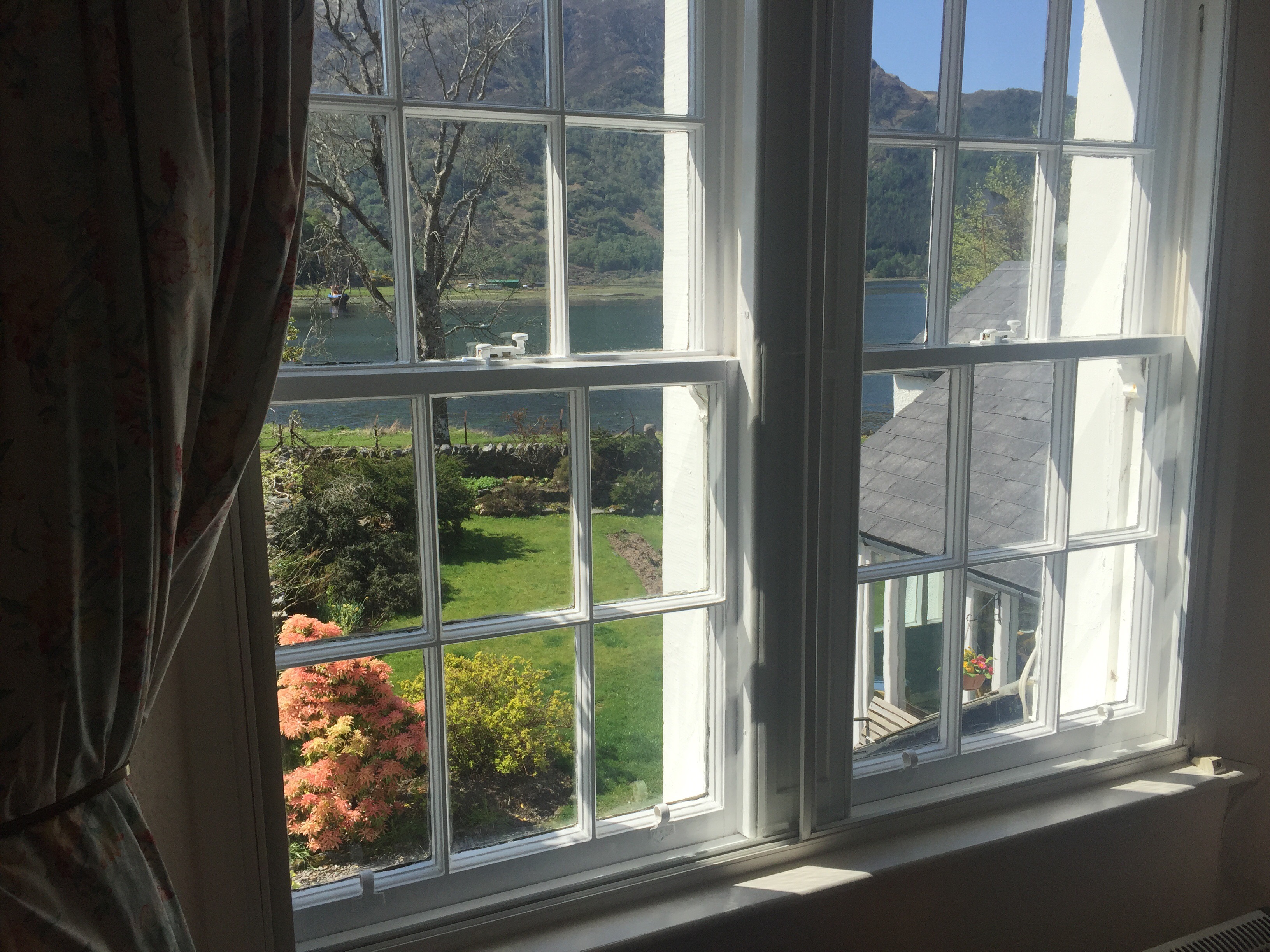 Conversation was great, the food mediocre, and the night was delightful. We arrived at Inverness in the morning, from where I took a bus to Shiel Bridge, hiked a mile to the hotel and here I am, staring out my hotel window, on the western shore of Scotland.