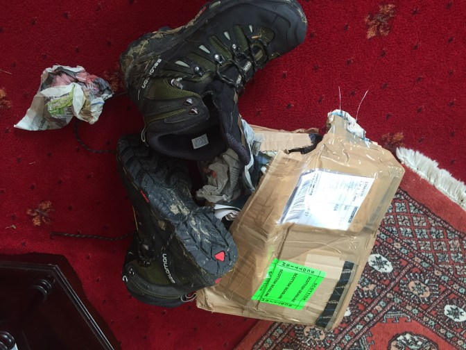 Having talked with TNT in Inverness, I learned my package would arrive there around 11 and possibly be here by 1PM. So I decided to wait for good news. And I got it, the boots arrived, were delivered by 12:45 and I was one the trail at 1pM.