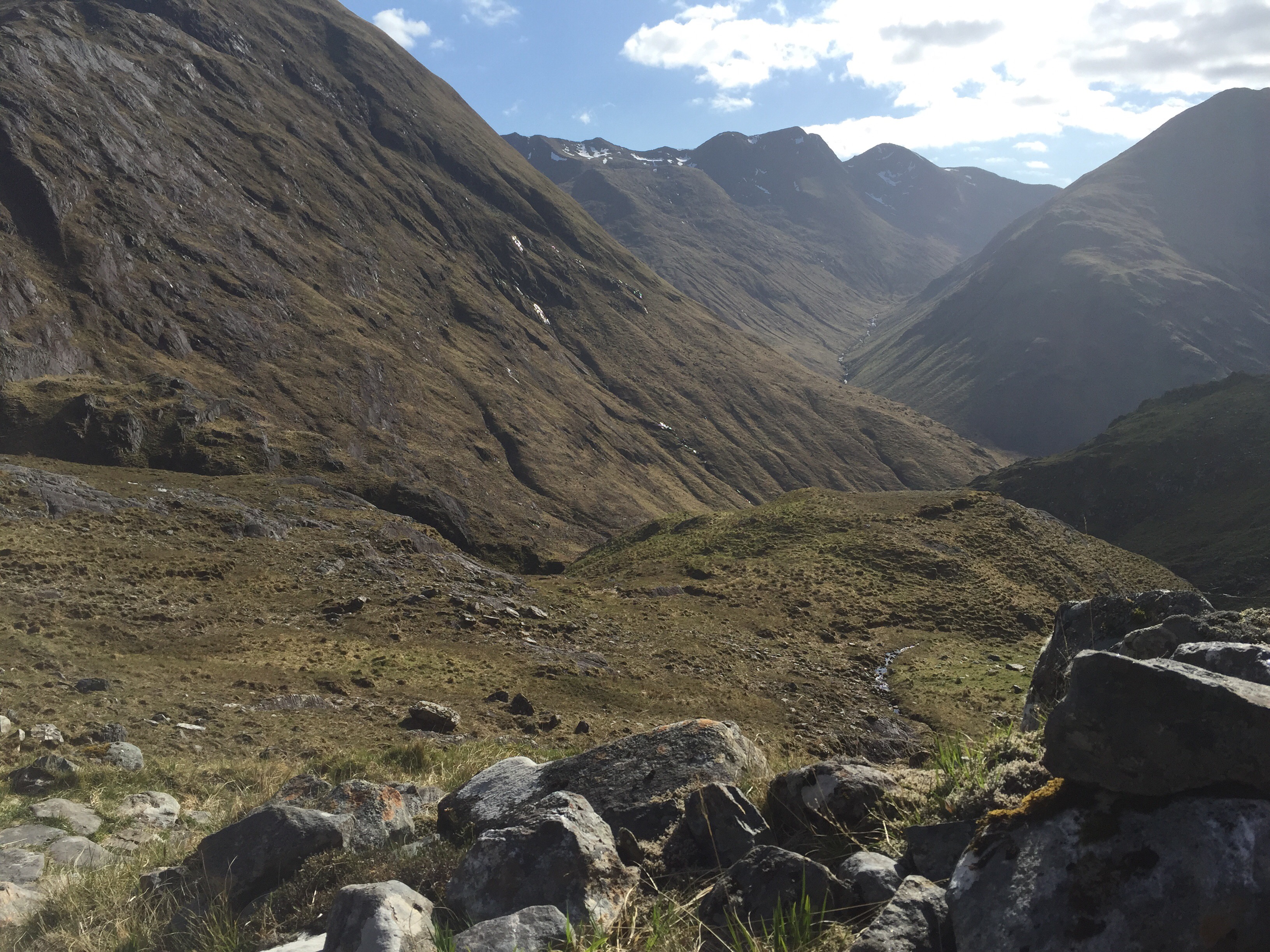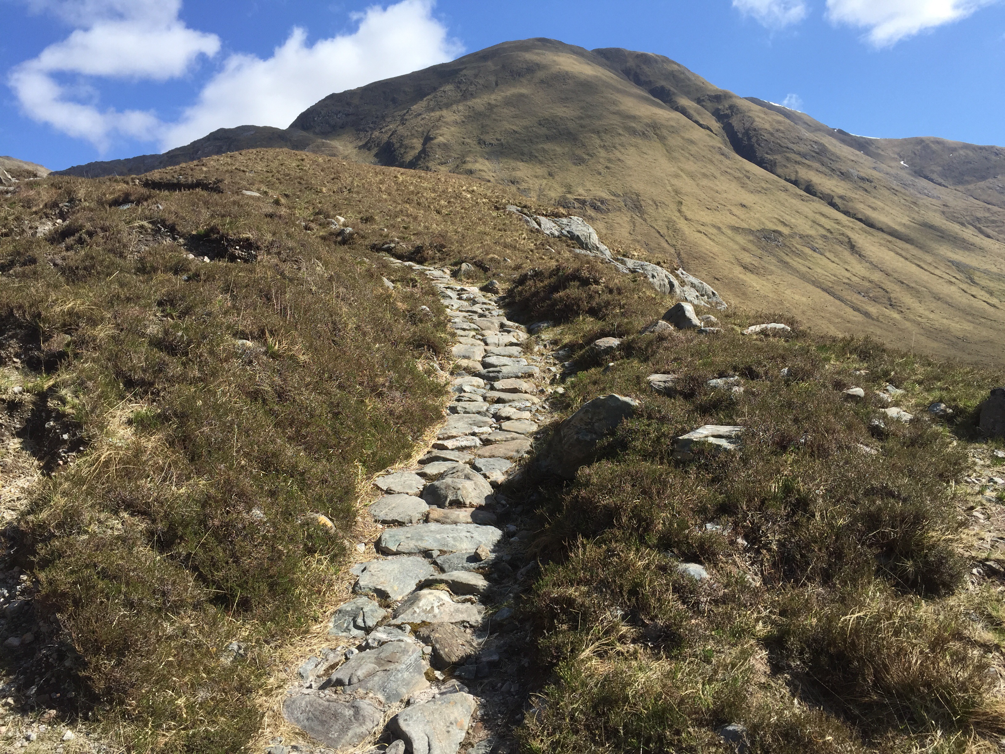 I hit the trail and marched on for a mile or two and came to a fork in the road. There were two routes towards Glen Affric (not to be confused with Ben Affleck) and the Altbeithe Hostel, the oldest hostel in Scotland. Mine was the northern route, through bogs and a steady ascent, the other was the southern route, with a 1200 meter ascent, sort of straight up. No let me get this correct, straight up.