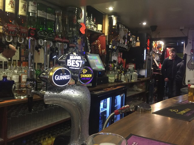 Attached to it was a new restaurant called the Bus Stop which was an American Bistro and not that bad. Medium ribs (I was getting full of fish and chips and haggis). I did manage to find a dive bar across the street where the patrons were arguing about betting and odds. I absolutely could not understand every third word. To replicate the conversation, fill your mouth with marbles and spew out random constanants 10 or 20 at a time. There, you’ve got it.