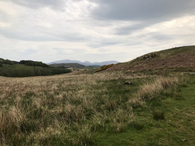 Walked through Oban and down a country road, towards Taynuilt. A gray day and mild temperature. The Brits call it a dull day.