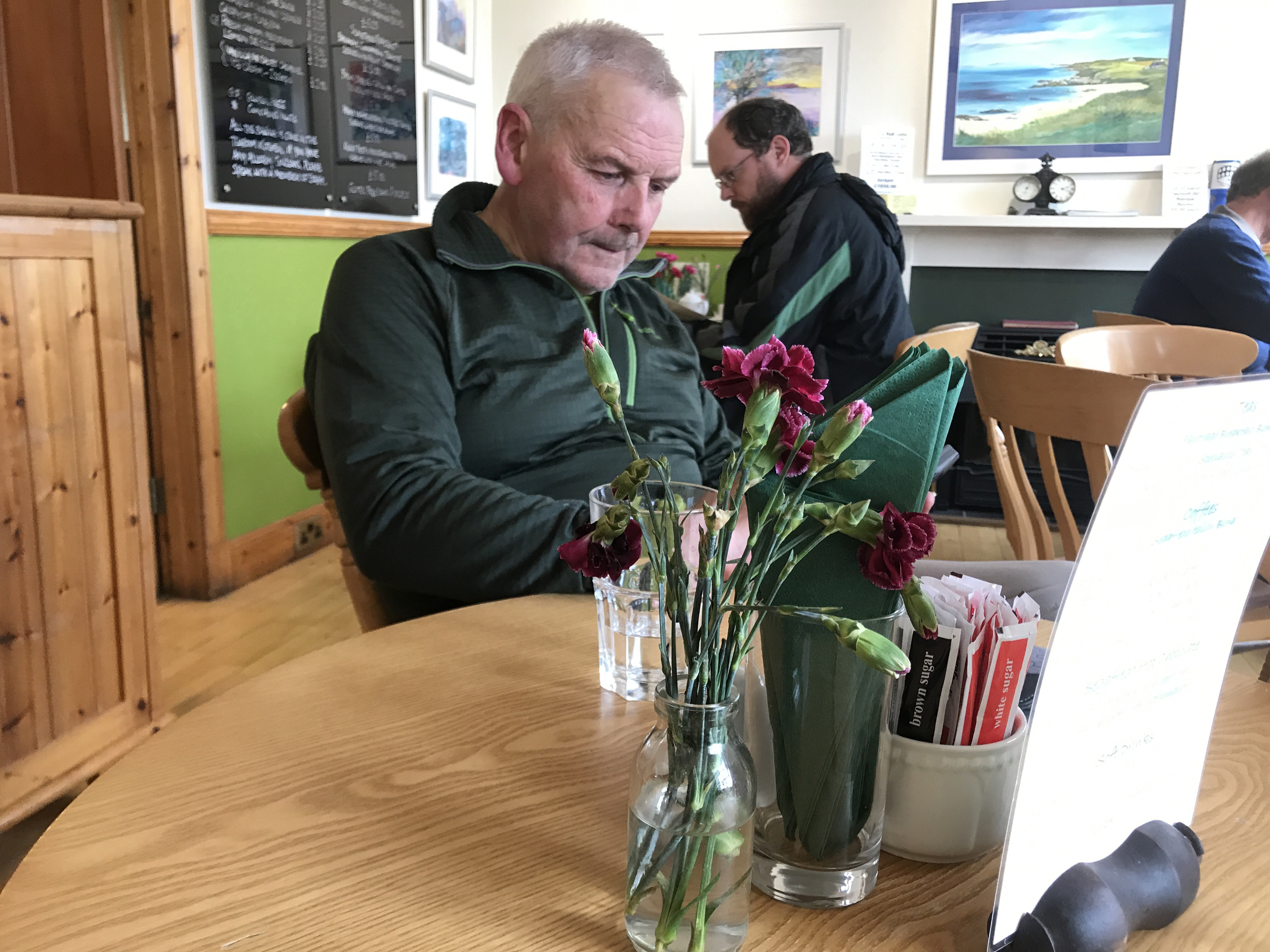 That’s Dennis while we had tea (okay, I had oranage juice and a beef and horseradish sandwich).