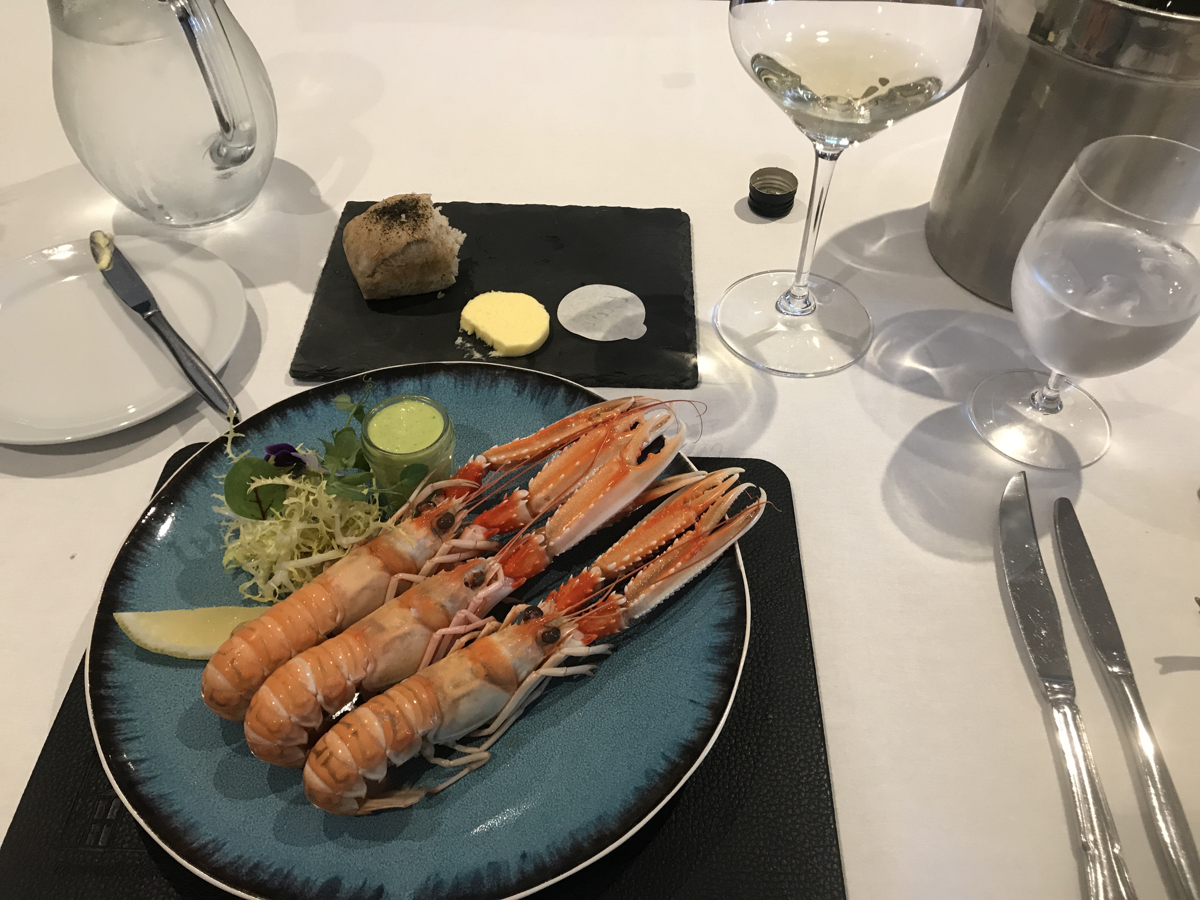 Any how, the first course was langoustines from the local waters. If you at all like seafood, this area of Scotland is God’s gift to you: