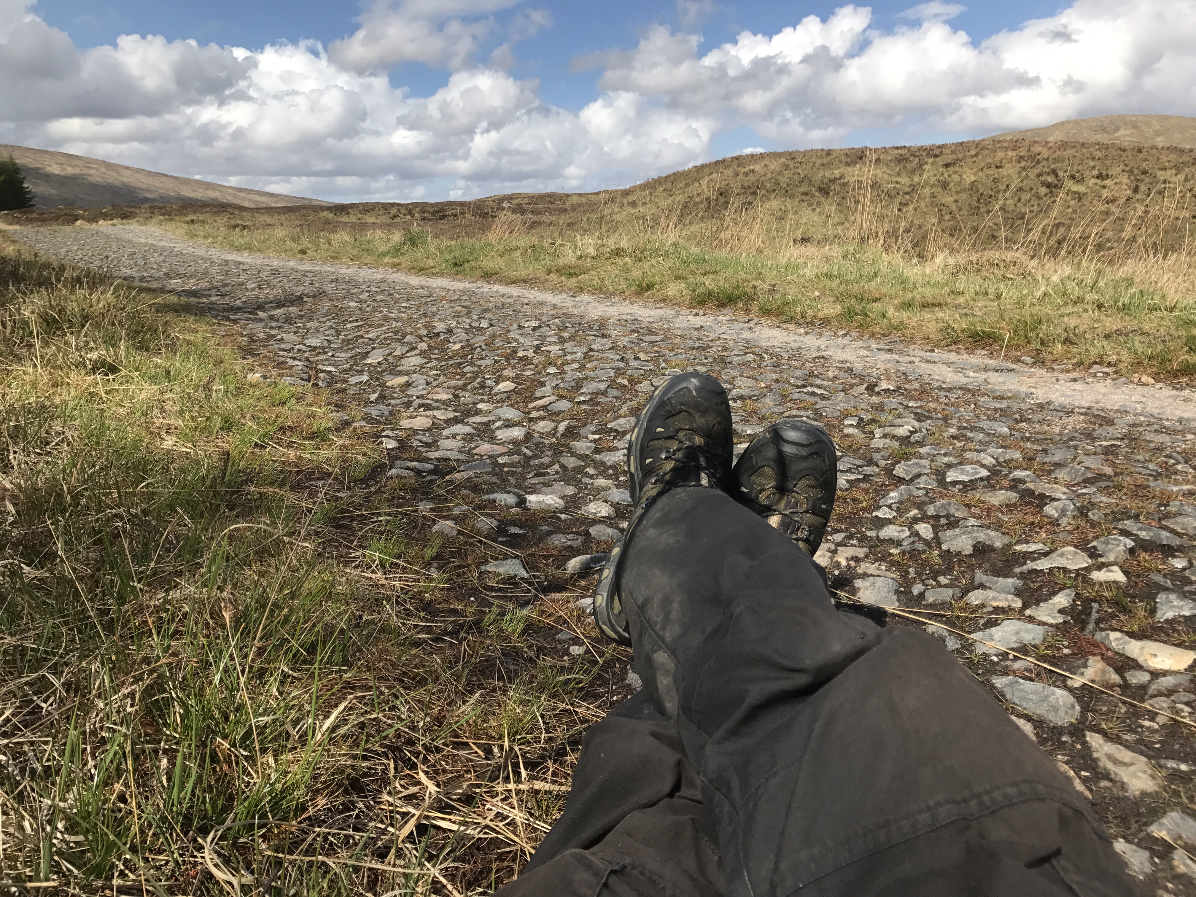 Margaret and David, carried on and I met up with them at the trail head for the West Highland way, an old drovers road from 1803. Just at the gate was Eddie Nelson, from the outskirts of Glasgow. Eddie used to hike quite regularly 35 miles through the hills. He gave up cycling when he turned 80. Now he makes sandwiches, tea and biscuits out of his own pocket to raise money to stop the spread of polio. “Bill Gates, matches whatever I raise!”