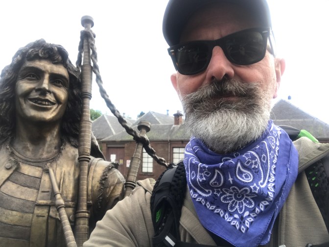 It’s for Bon Scott (1946-1980), lead singer in AC/DC. Apparently, Peter Pan was not the only boy from Kirriemuir who refused to grow up.