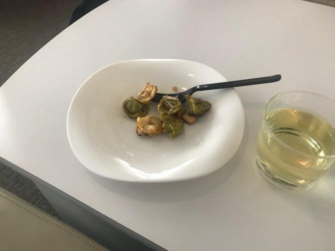 I’m not complaining, well not a lot. It is free. The tortellini is cold and the white wine is warm. Perhaps this is a new food trend I’m not aware of. If that is the case, then there are a ton of restaurants Ive been to in my life that are finally on the cutting edge of gastronomy.