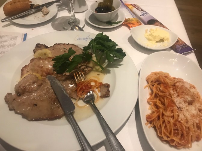 After that it was back to the Club to sleep and then dinner across the street at Caraffini, an Italian place that is outstanding, where I write this as I eat.