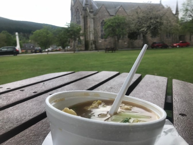 We arrived in Aboyne in record time. Once there looking for a place to stay, I spent a fair amount of time with a very kindly shop employee, looking for a place but to no avail. So I grabbed a bus back to Ballater and my original room, above the bar. Did I mention they do karaoke? Did I mention I hate Karaoke?