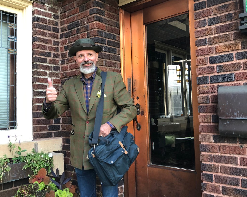 Here I am standing outside my house with my books and a juice box in my bag. Certainly, apprehensive about what the day will be like. Thankfully my hair is short so no one can dunk my braids in the ink wells. Remember it has been a while since I was in college.