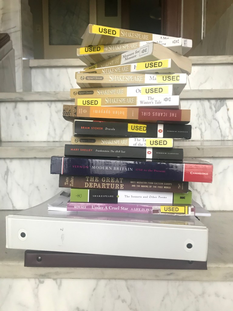 Thursday was the same class schedule as Tuesday; Shakespeare, Anthro, British Hist. I didn’t get lost once.
