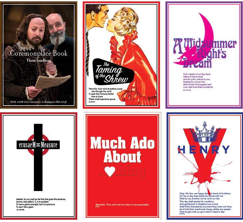 One of the things we need to do for class is to select a few lines from the play are studying and that we particularly like and write why into a Common Place book. We were allowed to add to that if we wanted to and so I did. I made a logo for each of the plays so far.