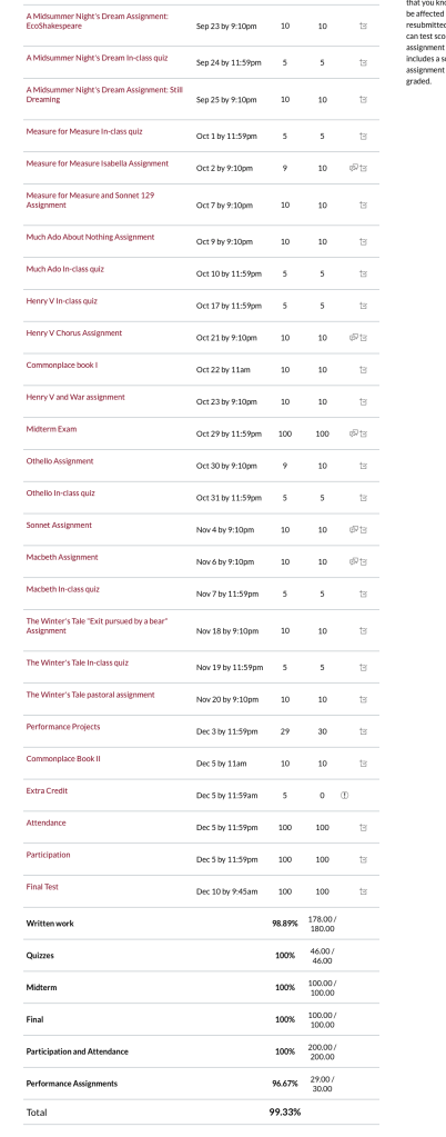 I do have one final grade to report, English Lit, my Shakespeare class. I did well. Frankly, feeling a tad lost waiting for Spring semester to start. But will keep you updated.