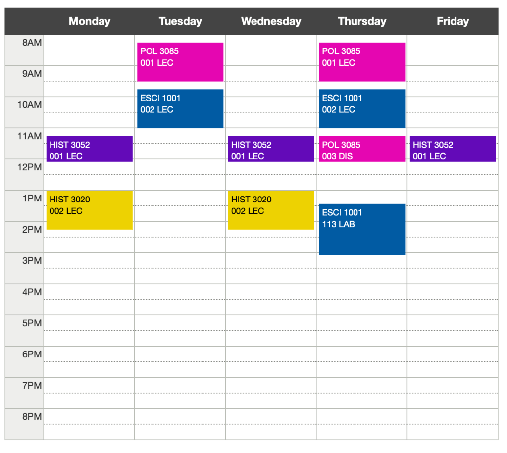 Tomorrow it is HIST 3052, Ancient Civilization: Greece and HIST 3020 Hands-On History, the study of the Hindu Nation.